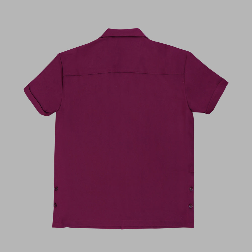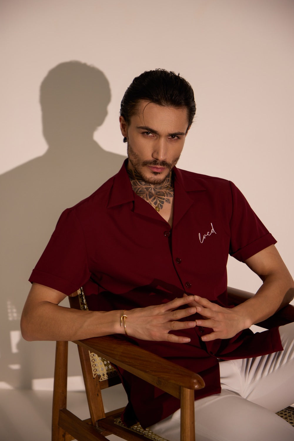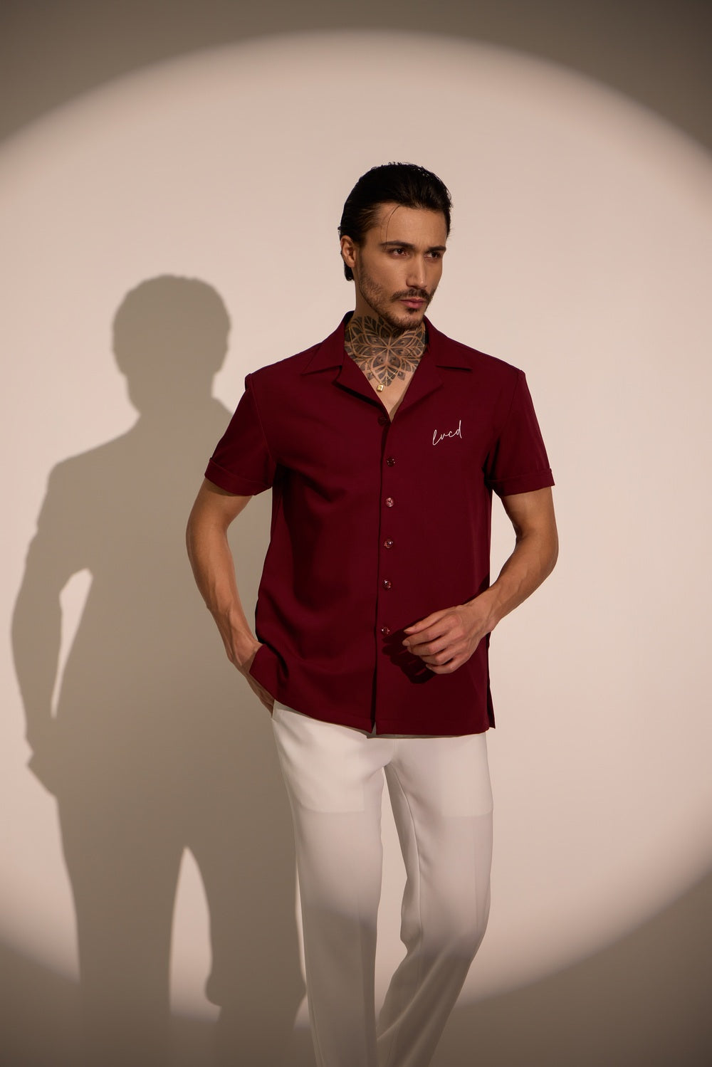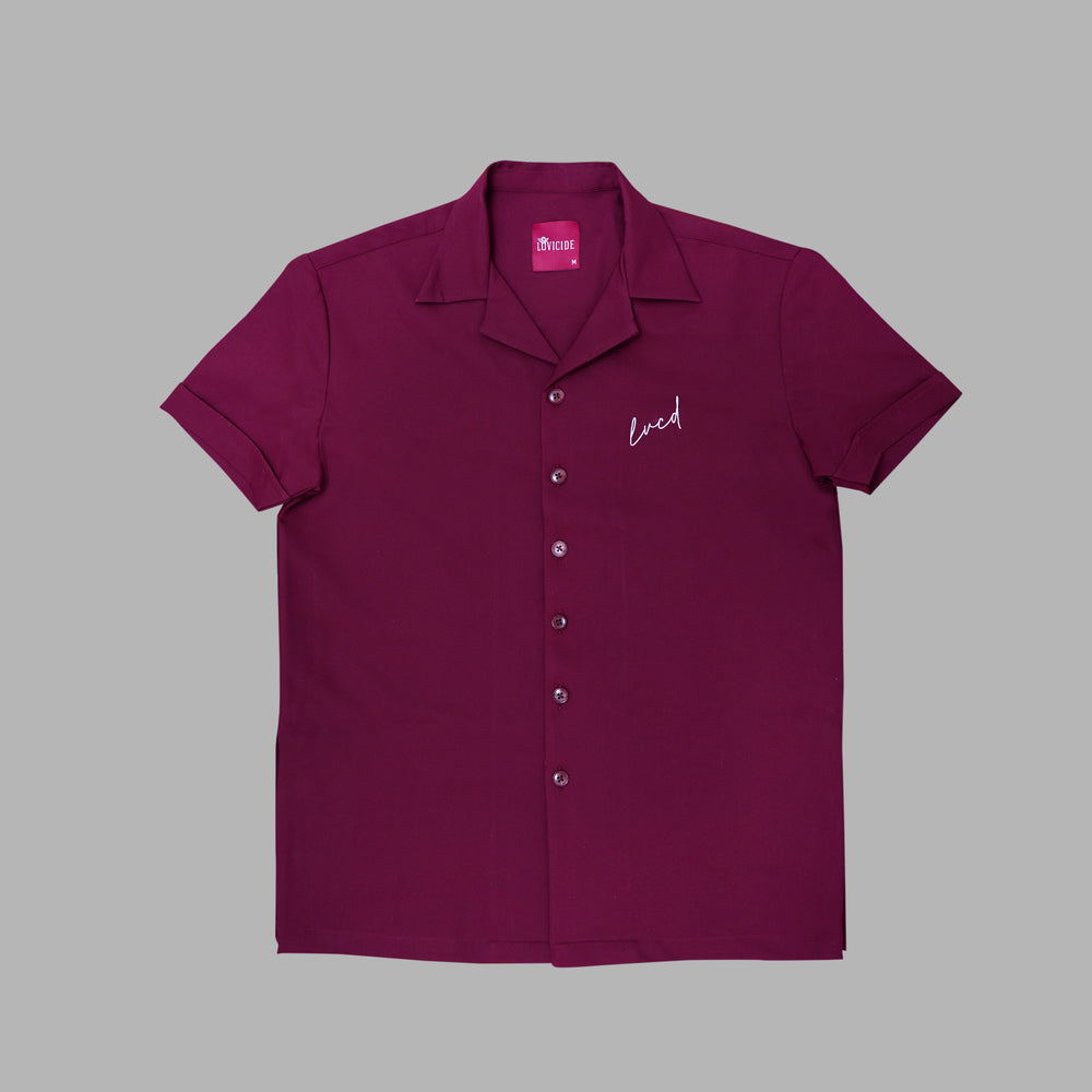 This wine short-sleeve shirt is cut from 100% cotton and finished with side buttons and a relaxed camp collar. The chest embroidery reads lvcd — subtle, sharp, and straight-up stylish. A low-effort, high-impact look for any mood